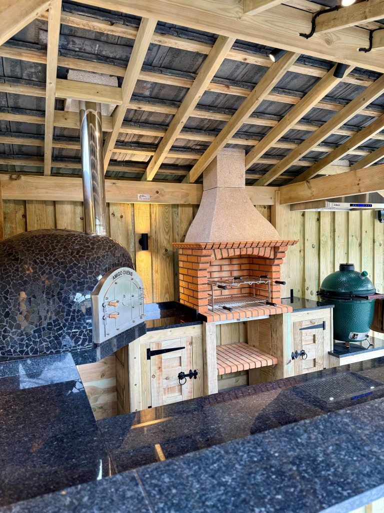 A step up in functionality, often combining a BBQ with an Amigo pizza oven or smoker, plus preparation space and storage. This setup suits families who cook outdoors regularly.
