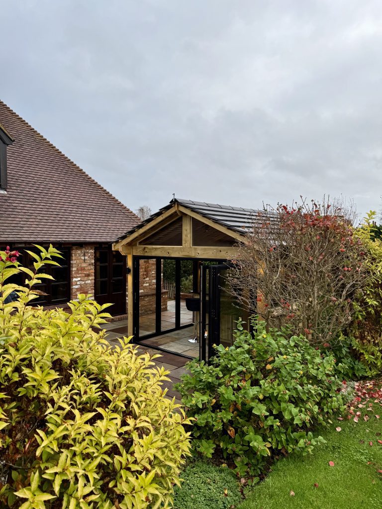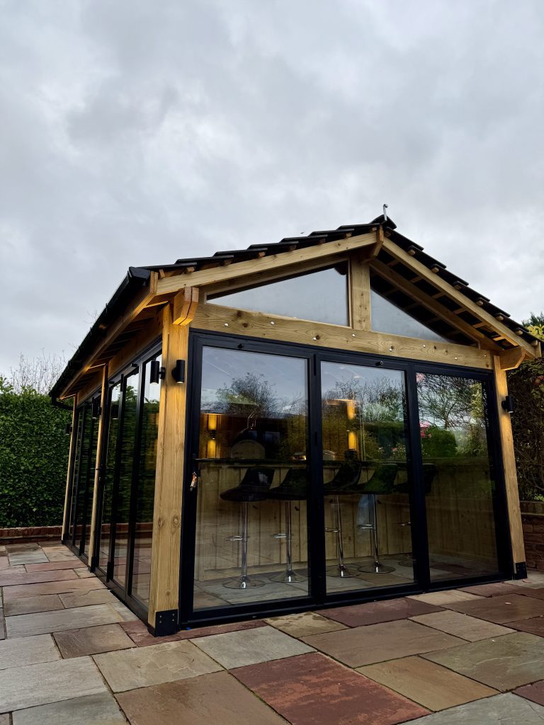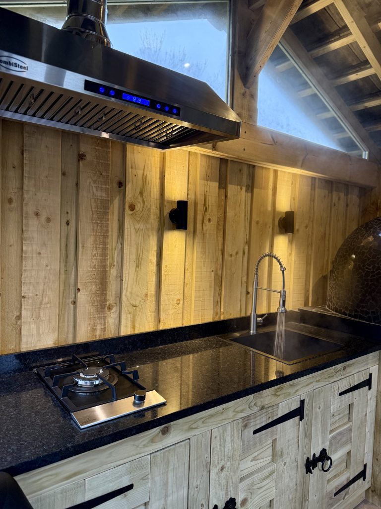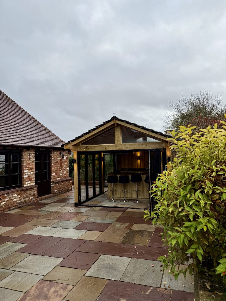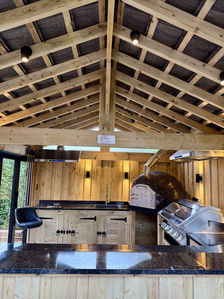 This recently completed outdoor kitchen barn blends traditional charm with practical, high-quality features. Designed for relaxed outdoor living, the space includes triple bi-fold doors allowing the area to be fully opened up during the warmer months or enclosed for the comfort when the weather turns.