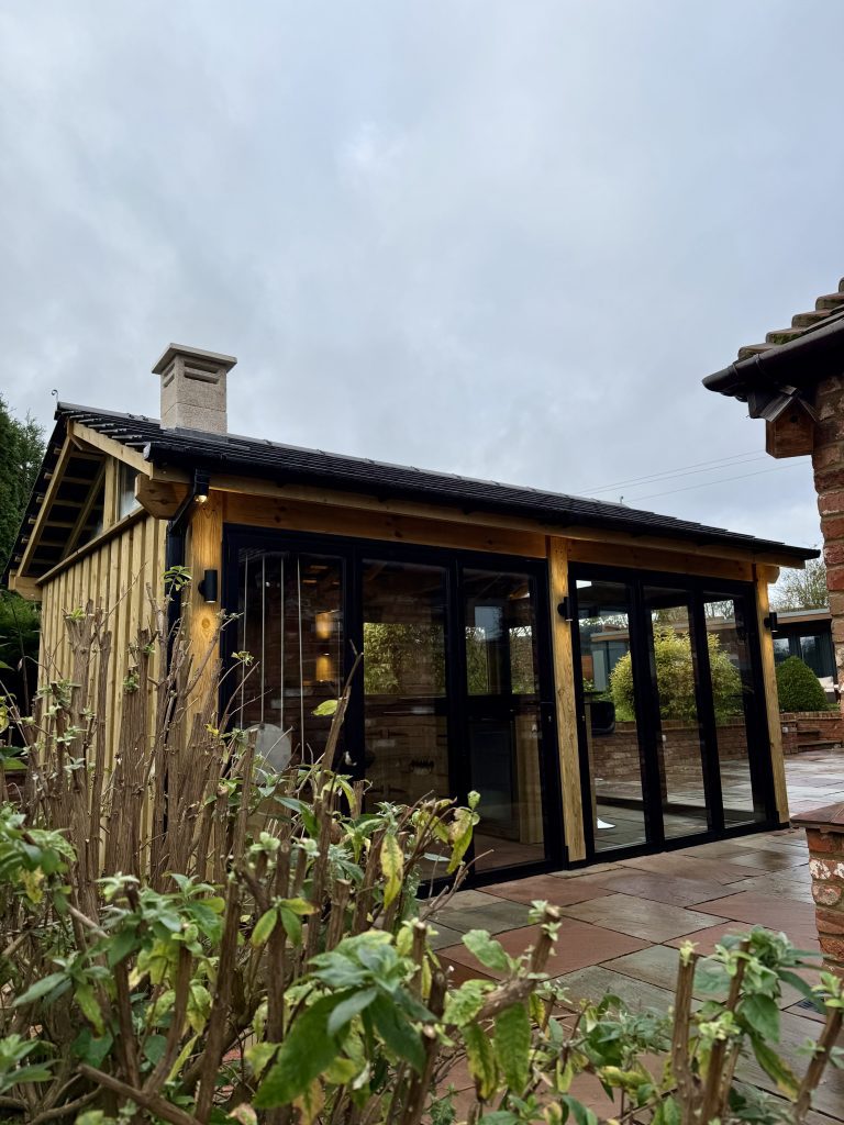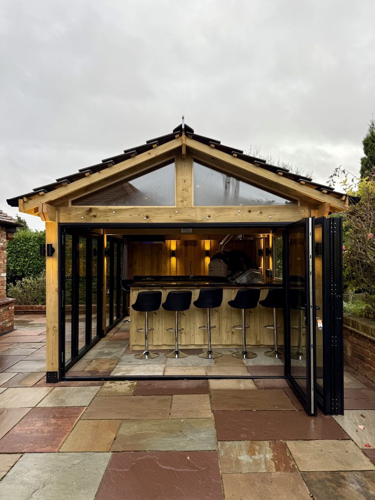 Unlike open patios or pergolas, a well-designed barn provides consistent shelter from the unpredictable British climate while still maintaining an open, outdoor feel.